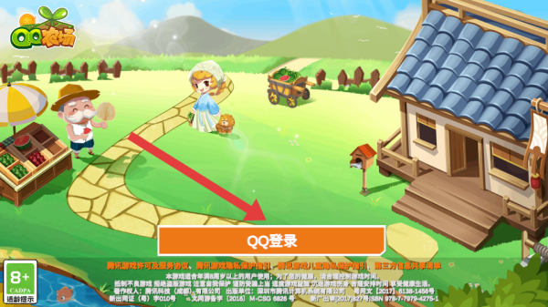 3、頁(yè)面重新跳轉(zhuǎn)至登錄界面后,找到橙色的QQ登錄按鈕并點(diǎn)擊,通過QQ賬號(hào)授權(quán)方式,完成切換賬號(hào)登錄操作,進(jìn)入農(nóng)場(chǎng)。