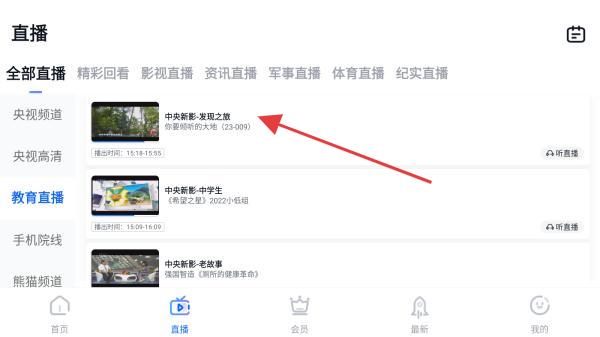 2、在直播的頁面內(nèi),點(diǎn)擊要投屏的視頻并播放。