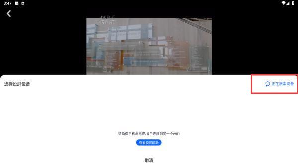 4、確保與電視連接同一WIFI即可,過程中會(huì)搜索能夠投屏的設(shè)備,需要用戶耐心等待。