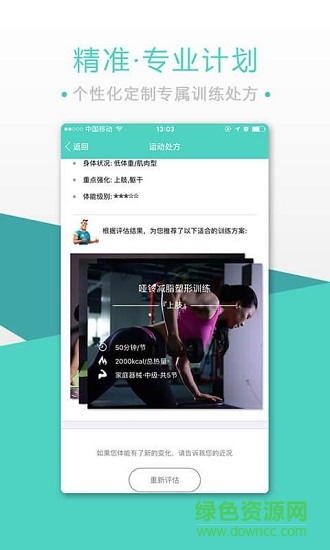 個性化定制,根據(jù)經(jīng)驗水平及個人健身進行智能編排,打造出最適合你的健身、增肌、減脂/減肥、瑜伽高效訓練計劃;