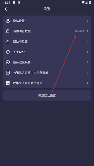 3、在設(shè)置頁面中,點(diǎn)擊清除瀏覽數(shù)據(jù)選項(xiàng),進(jìn)入清除瀏覽數(shù)據(jù)頁面。