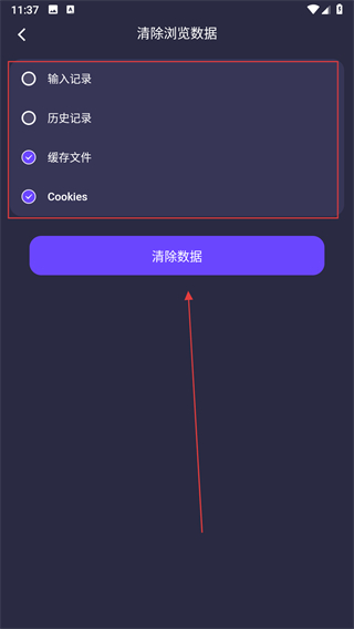 4、在清除瀏覽數(shù)據(jù)頁面,勾選想要清除的數(shù)據(jù)類型,點(diǎn)擊清除數(shù)據(jù)。