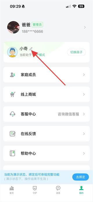 2、在個人中心頁面,點擊孩子的頭像如小奇,進(jìn)入孩子信息頁面。