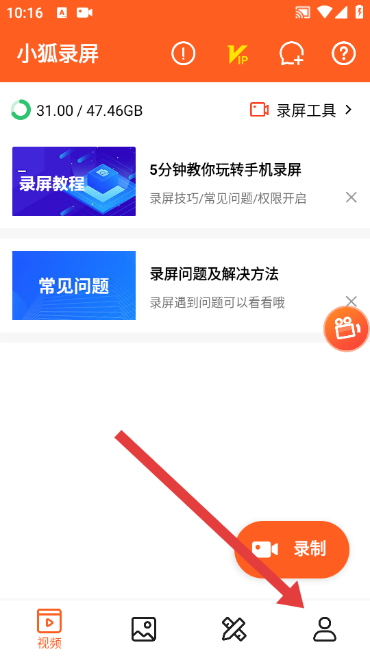 1、在小狐錄屏主界面,點(diǎn)擊底部導(dǎo)航欄我的選項(xiàng),進(jìn)入個(gè)人頁(yè)面。