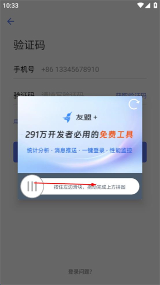 3、在彈出的驗證界面,按住左邊滑塊拖動,完成上方拼圖驗證,獲取對應(yīng)的驗證碼。