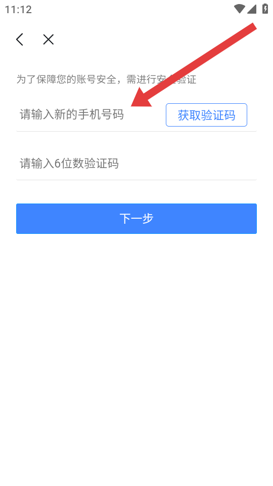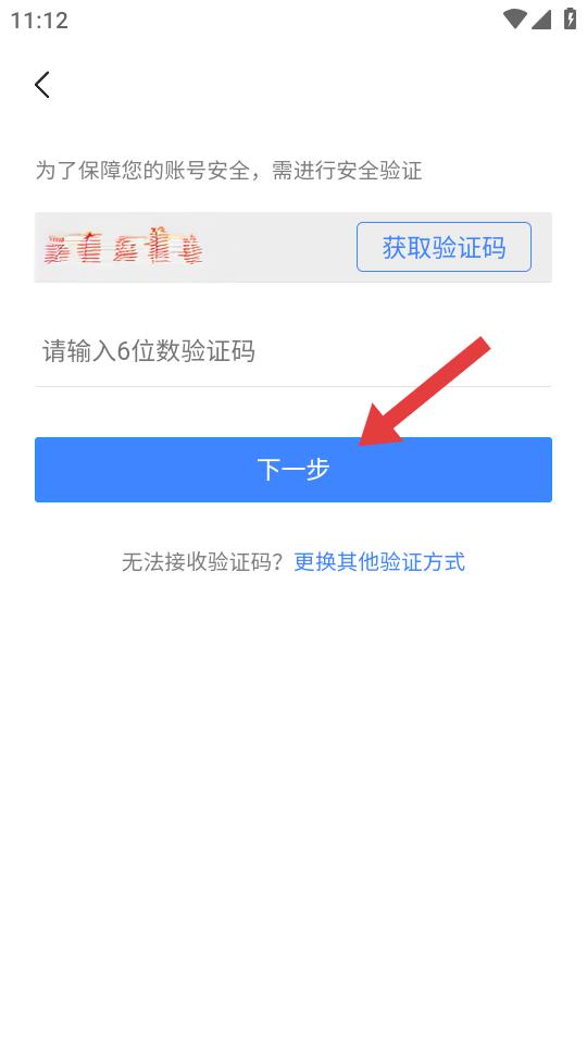 2、在安全驗(yàn)證的頁面,需要輸入原手機(jī)號碼的驗(yàn)證碼,點(diǎn)擊下一步完成身份的驗(yàn)證。