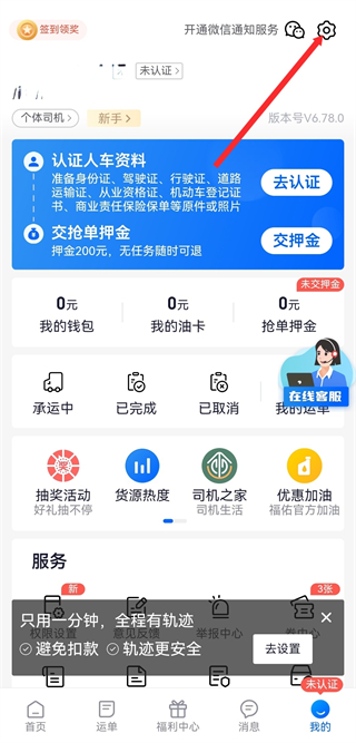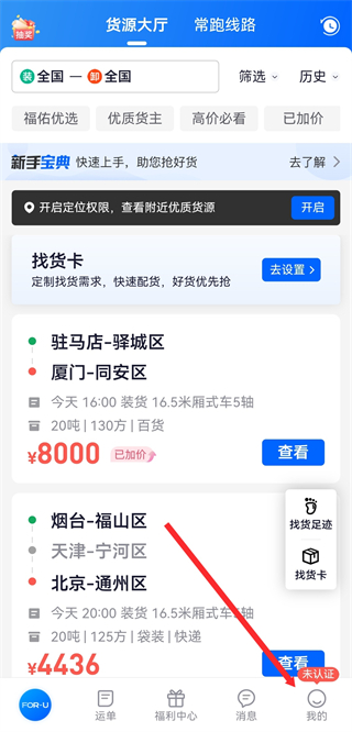 1、打開福佑卡車司機APP,點擊右下角我的,進入個人頁面。