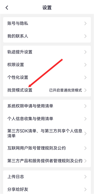 3、在設置的頁面,我們需要找到并點擊找貨模式設置的按鈕。