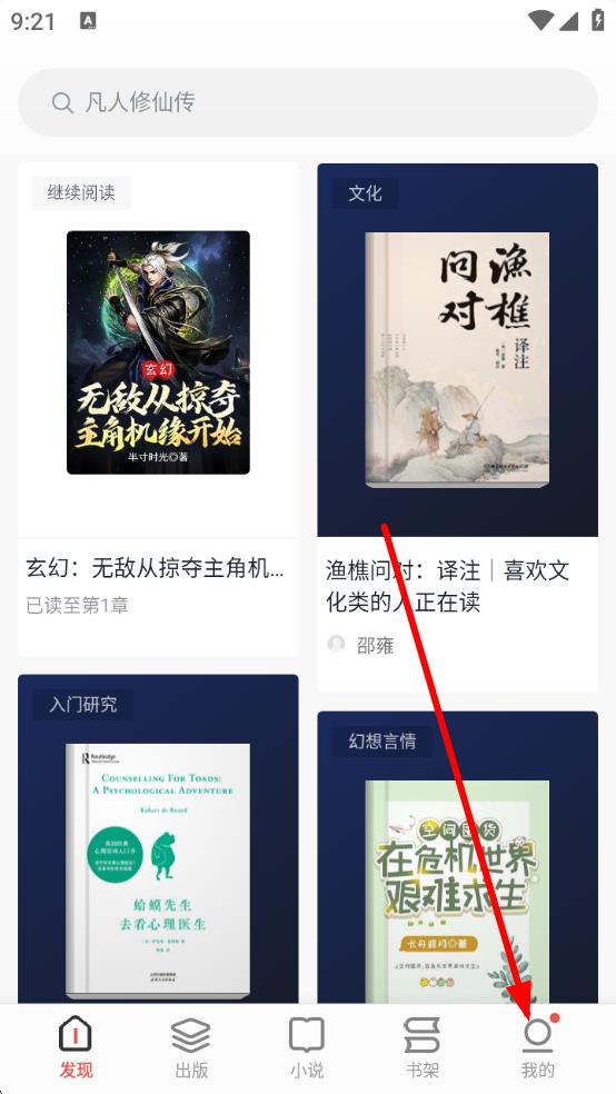 1、打開掌閱APP,點(diǎn)擊底部導(dǎo)航欄中的我的進(jìn)入個(gè)人相關(guān)界面。