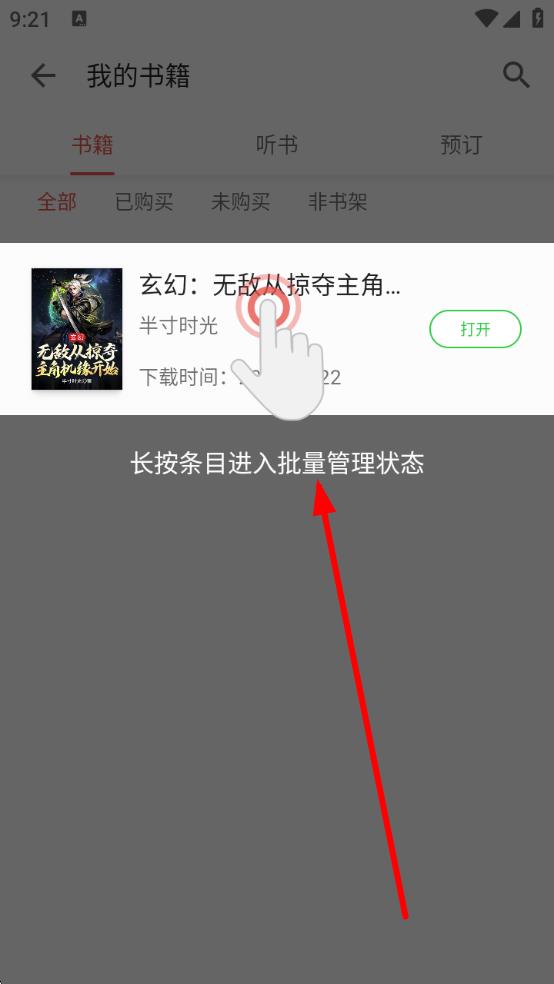 2、在個(gè)人界面里找到我的書籍并點(diǎn)擊進(jìn)入,長按書籍條目進(jìn)入批量管理狀態(tài)。