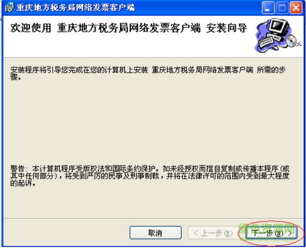 安裝過程中提示如下錯(cuò)誤,請(qǐng)先卸載之前安裝的網(wǎng)絡(luò)發(fā)票客戶端、然后再進(jìn)行安裝。