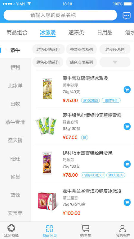 各大品牌冰淇淋、冷食,種類齊全;蒙牛、伊利、雀巢、八喜、哈根達(dá)斯、和路雪、藍(lán)逸、壹清等品牌應(yīng)有盡有!灣仔碼頭、三全、勝田、恒慧等冷食品牌一應(yīng)具全!