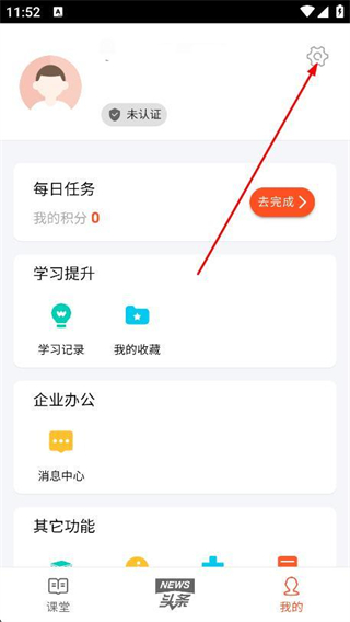 2、在我的頁面中,找到并點擊右上角的設(shè)置圖標。