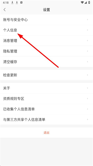 2、在設(shè)置頁面,點(diǎn)擊個人信息選項(xiàng),進(jìn)入個人信息頁面。