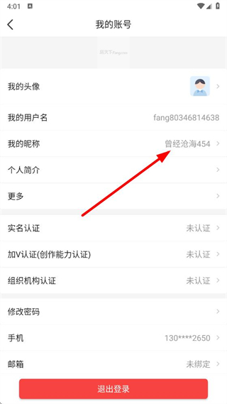 4、在我的賬號頁面,找到我的昵稱選項,點擊后即可修改對應(yīng)的用戶名信息。