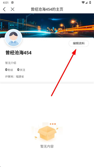 3、在個人主頁中,找到編輯資料按鈕并點擊,進入資料編輯界面。