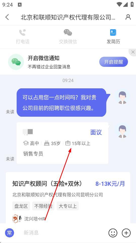 4、完成投遞后,你可以在消息頁面查看發(fā)送的簡歷。