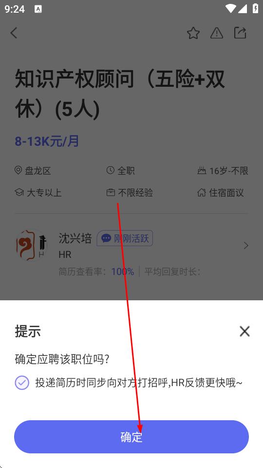 3、在彈出的提示框中,確認(rèn)應(yīng)聘該職位,點(diǎn)擊確定。