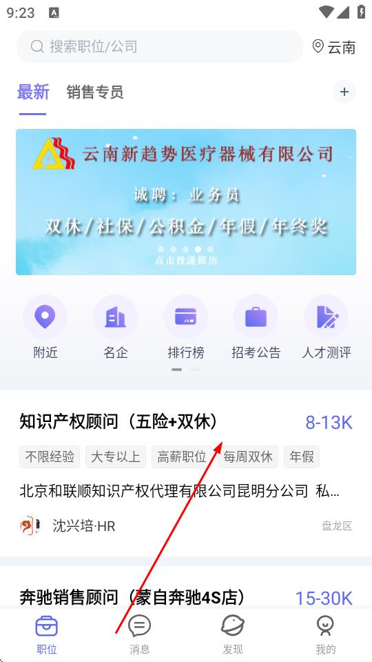 1、打開云南招聘網(wǎng)APP,在首頁瀏覽找到你感興趣的職位,點(diǎn)擊進(jìn)入該職位詳情頁面。