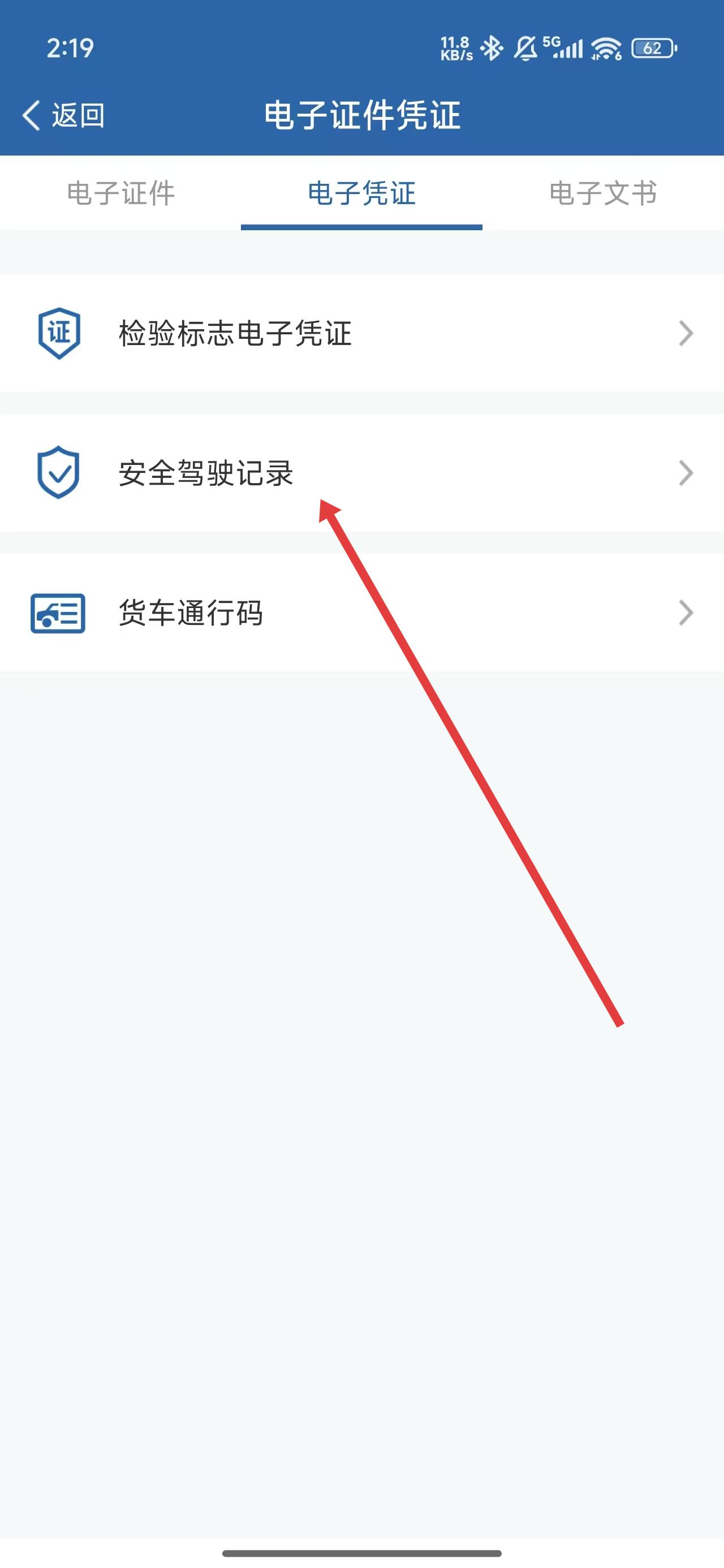 2、在跳轉到電子證件憑證頁面中,可以點擊模塊下的安全駕駛記錄,進入查看。