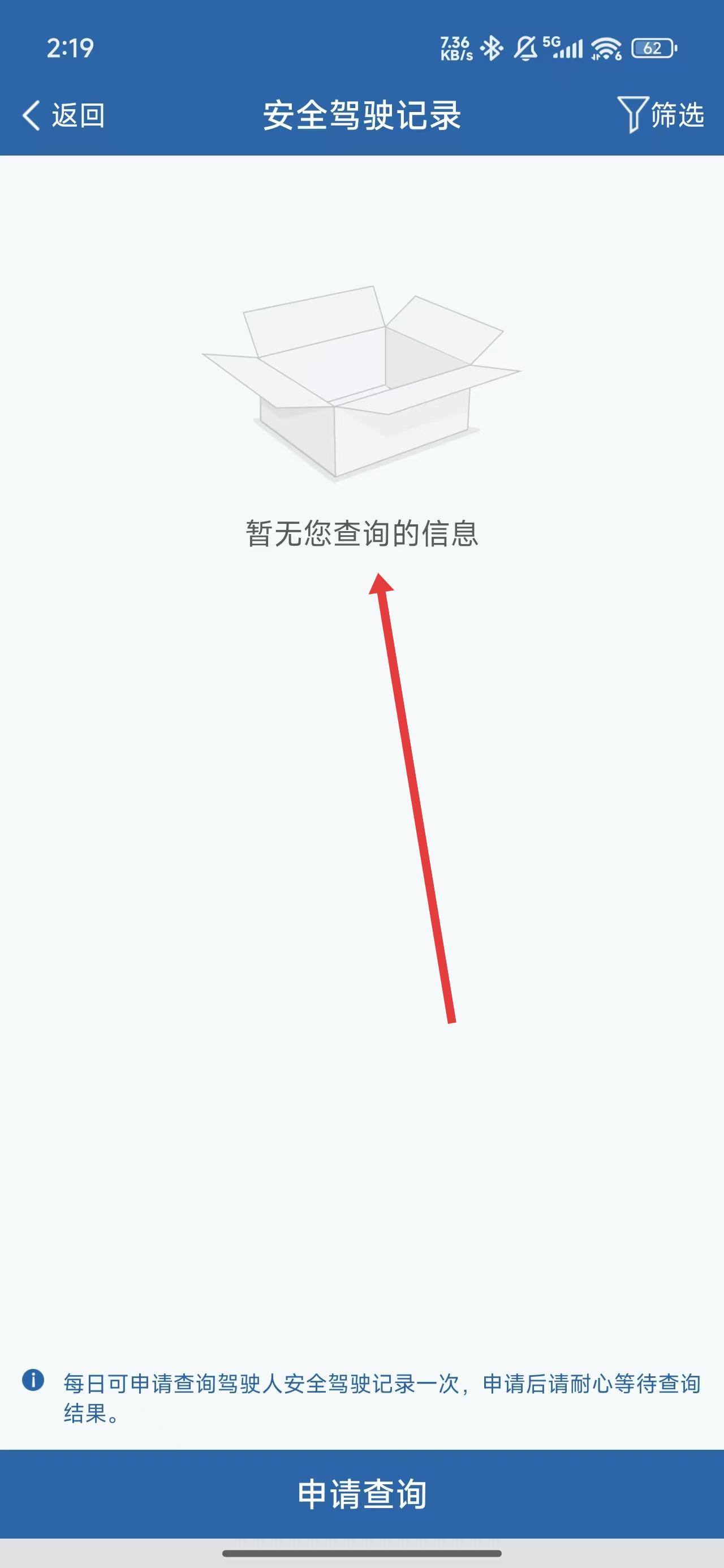 3、在安全駕駛記錄頁面中,可以觀察到當前暫無查詢的安全駕駛記錄信息。