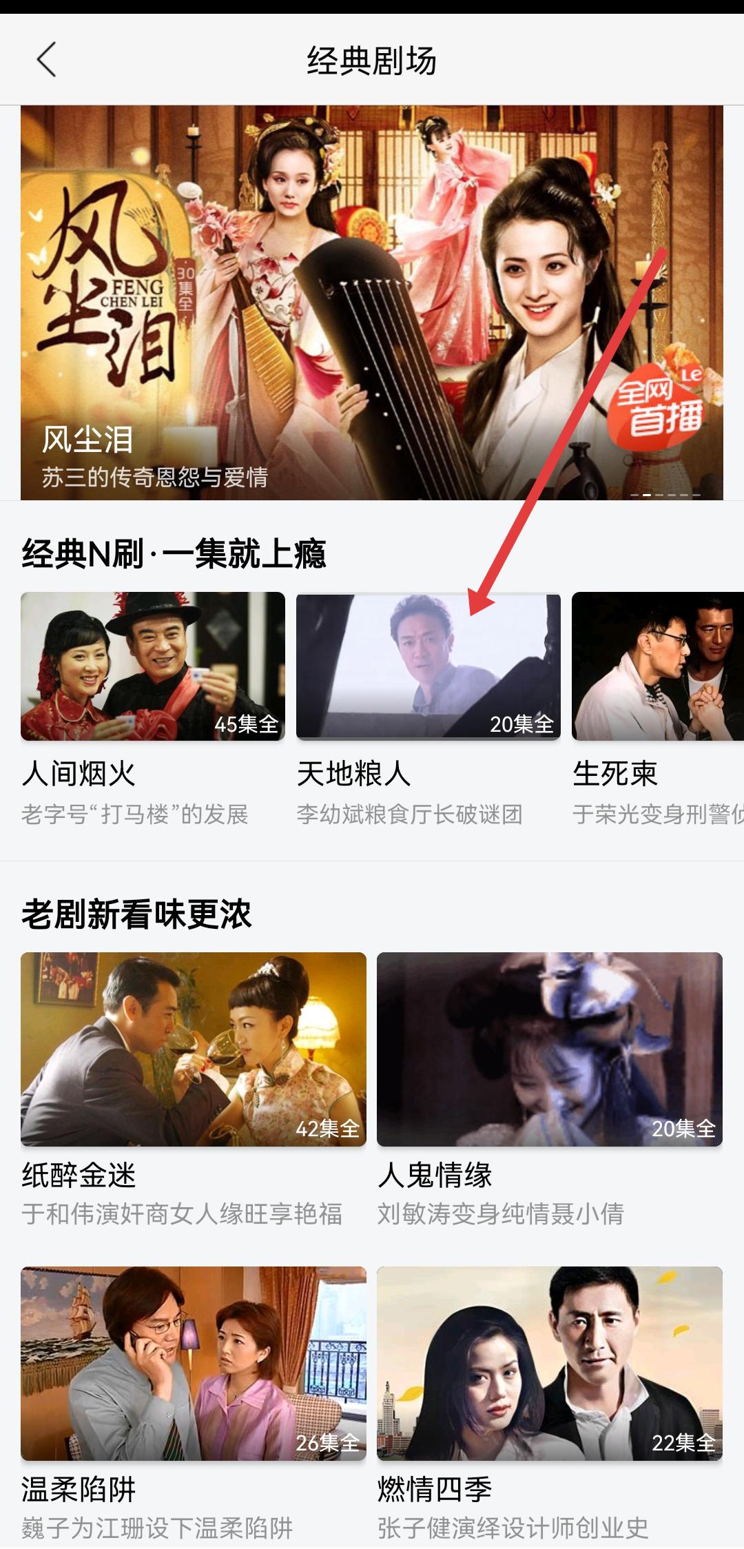 1、打開樂視視頻APP,在經(jīng)典劇場(chǎng)等板塊中,點(diǎn)擊想要下載的電視劇,進(jìn)入該劇播放的頁面。