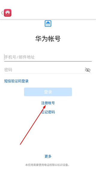 2、在華為帳號(hào)登錄頁(yè)面點(diǎn)擊注冊(cè)帳號(hào),選擇使用手機(jī)號(hào)注冊(cè)。