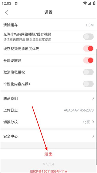 3、進入設(shè)置頁面后,找到并點擊退出選項。