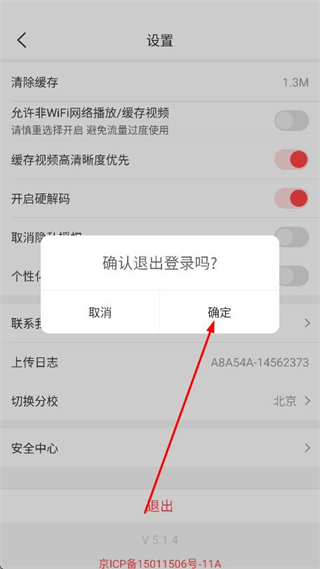 4、在彈出的提示框中,點擊確定即可退出登錄。
