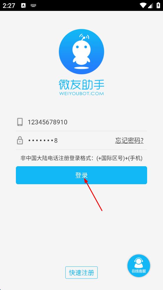 2、若已有賬號,進入登錄頁面輸入手機號碼和密碼,點擊登錄按鈕。