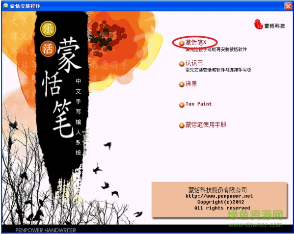 1. 下載完畢后解壓縮,點(diǎn)擊penpower_Handwriter.exe在線下載安裝,選擇〔蒙恬筆X〕選項(xiàng)。