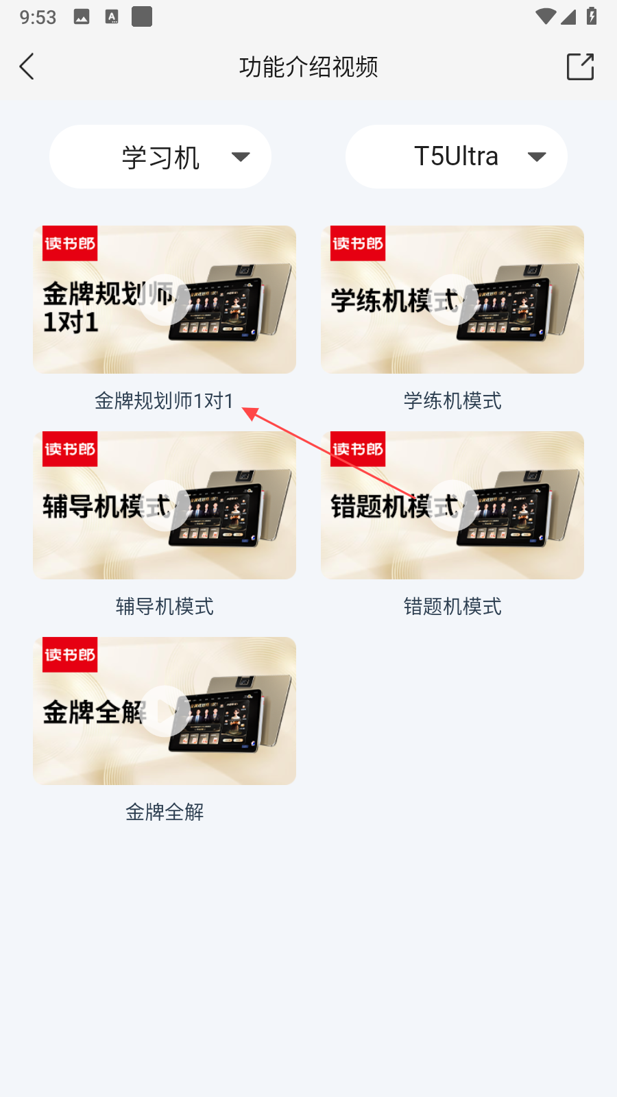 3、確定產(chǎn)品類別和型號(hào)后,界面會(huì)展示該產(chǎn)品對(duì)應(yīng)的功能介紹視頻列表,點(diǎn)擊想要了解的功能視頻,即可觀看視頻學(xué)習(xí)對(duì)應(yīng)產(chǎn)品功能的使用方法。