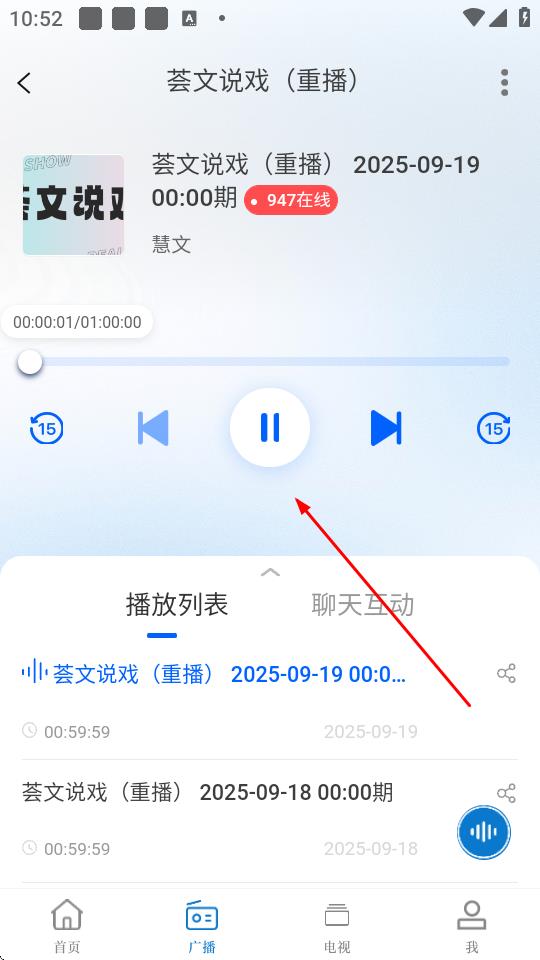 4、進入節(jié)目回聽頁面后,點擊播放按鈕即可收聽。