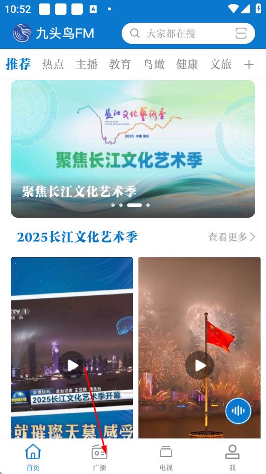 1、打開九頭鳥FMAPP,點擊底部導航欄中的廣播圖標。