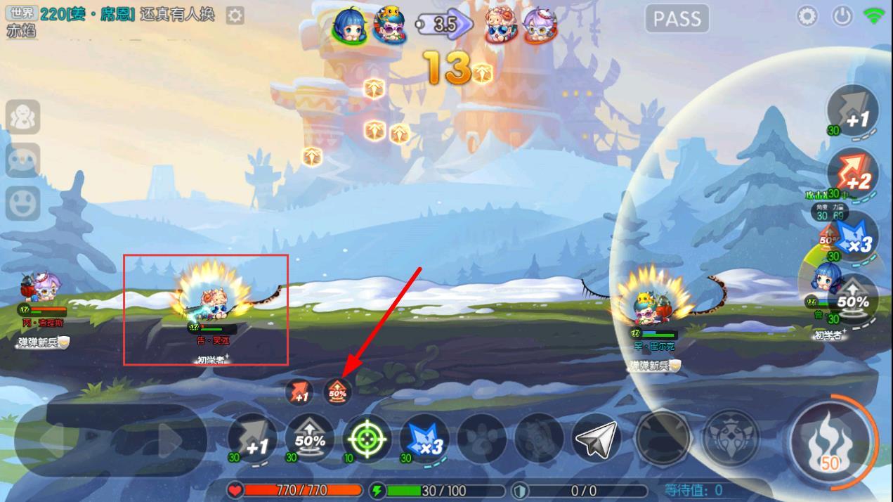 1、在彈彈堂游戲中,當出現輪到你出手啦的提示時,先觀察對手的位置,同時注意屏幕下方的操作按鈕。