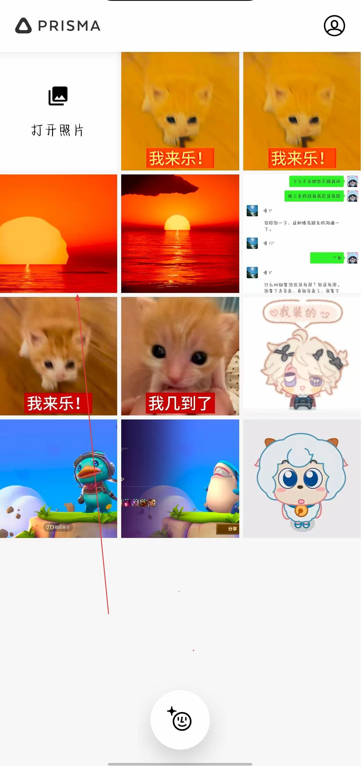 1、打開(kāi)Prisma,選擇自拍圖或打開(kāi)相冊(cè)的照片