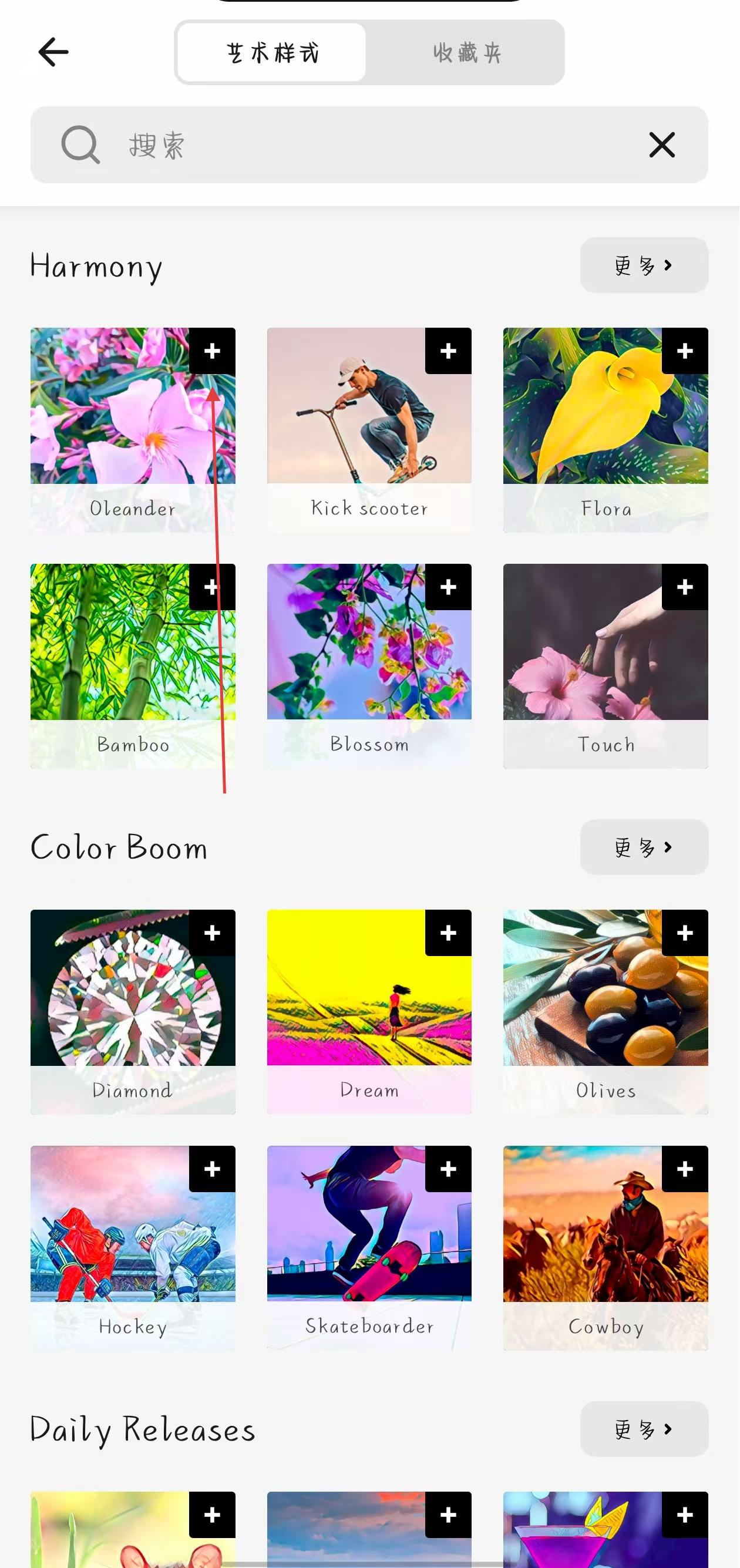 2、點(diǎn)擊底部添加更多700+樣式,進(jìn)入藝術(shù)樣式選擇頁(yè)面。
