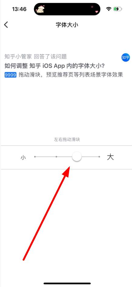 3、左右拖動字體大小設(shè)置頁的滑塊,調(diào)整至合適的字體大小。
