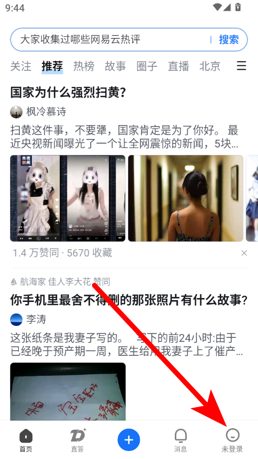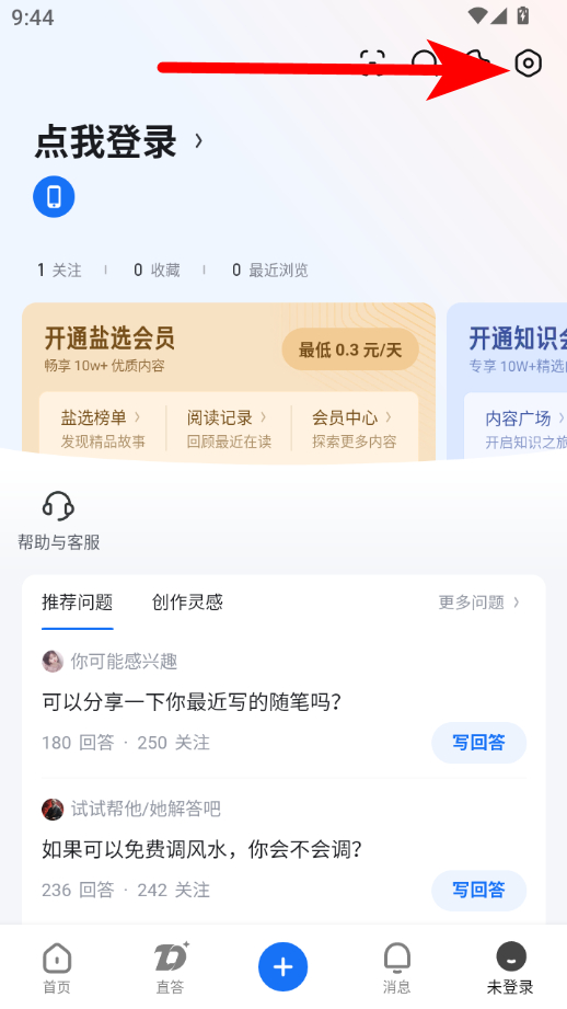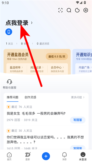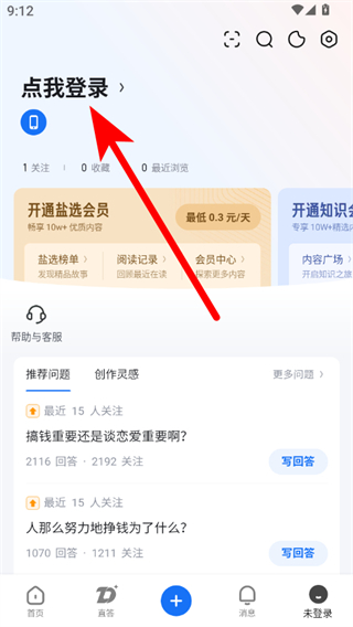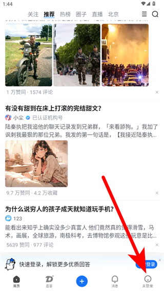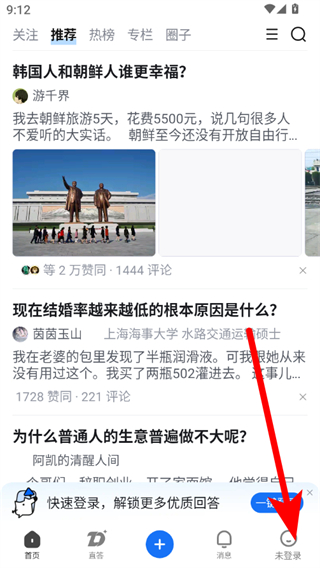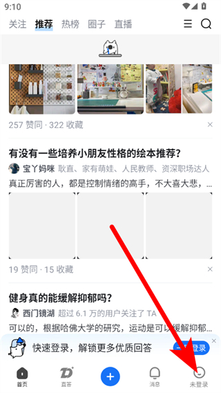 1、在知乎首頁,點擊右下角未登錄選項,進入個人界面。