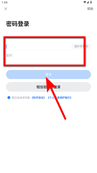 4、輸入手機號和密碼,勾選同意協(xié)議后點擊登錄按鈕,即可完成密碼登錄操作。