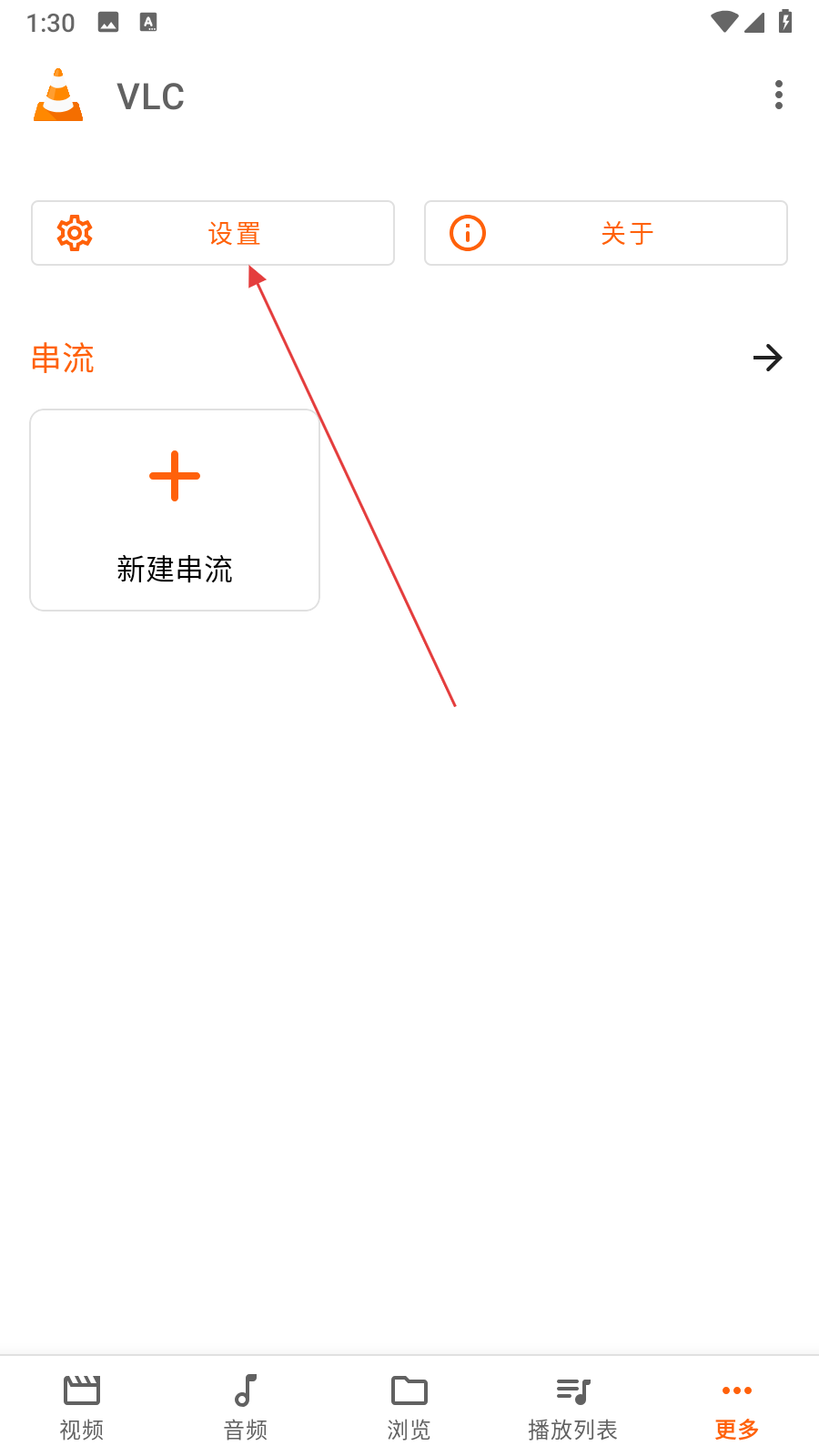 1、打開VLC播放器,進(jìn)入更多頁面后,點(diǎn)擊設(shè)置按鈕。