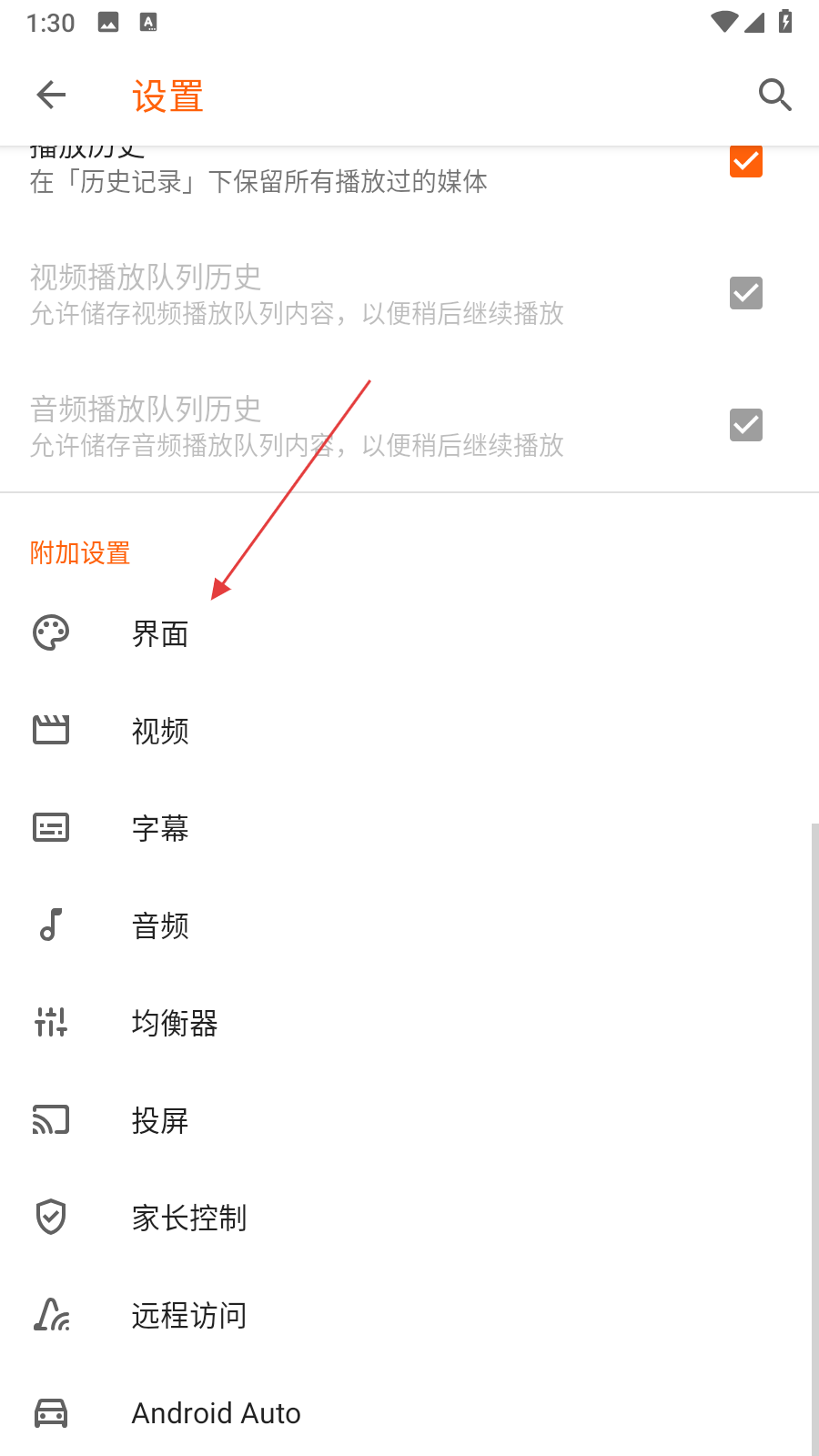 2、在設(shè)置頁面中,點(diǎn)擊界面選項(xiàng)。