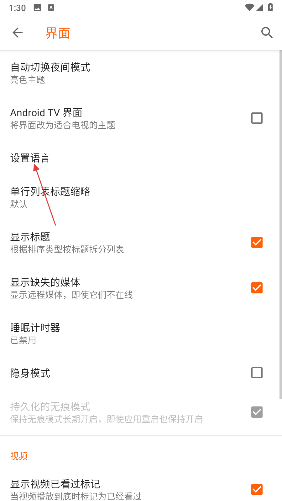 3、進(jìn)入界面設(shè)置頁面后,找到并點(diǎn)擊設(shè)置語言選項(xiàng)。
