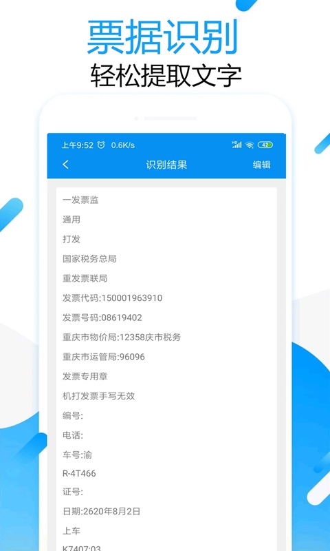 拍圖取字是一款手機(jī)文字識別軟件,是一個照片,圖片文字掃描識別工具,高效精準(zhǔn)識別文字,App擁有智能OCR識別功能,標(biāo)準(zhǔn)漢字識別準(zhǔn)確度高。手機(jī)拍文字、拍文檔,一掃一取,所見即所得,可以裝口袋的掃描儀。