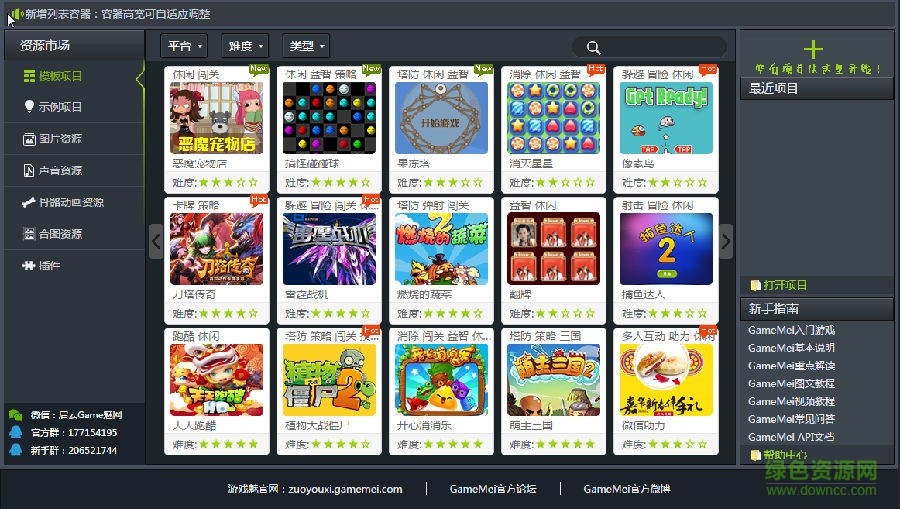 游戲魅是一款游戲DIY制作和開發(fā)軟件,其優(yōu)點在于可以不下代碼就可以制作出Android、ios、H5平臺的游戲,簡單可行,是游戲策劃或是有個性創(chuàng)造的人群喜愛的軟件,綠色資源網(wǎng)為大家?guī)砉俜阶钚掳嫦螺d,歡迎體驗!