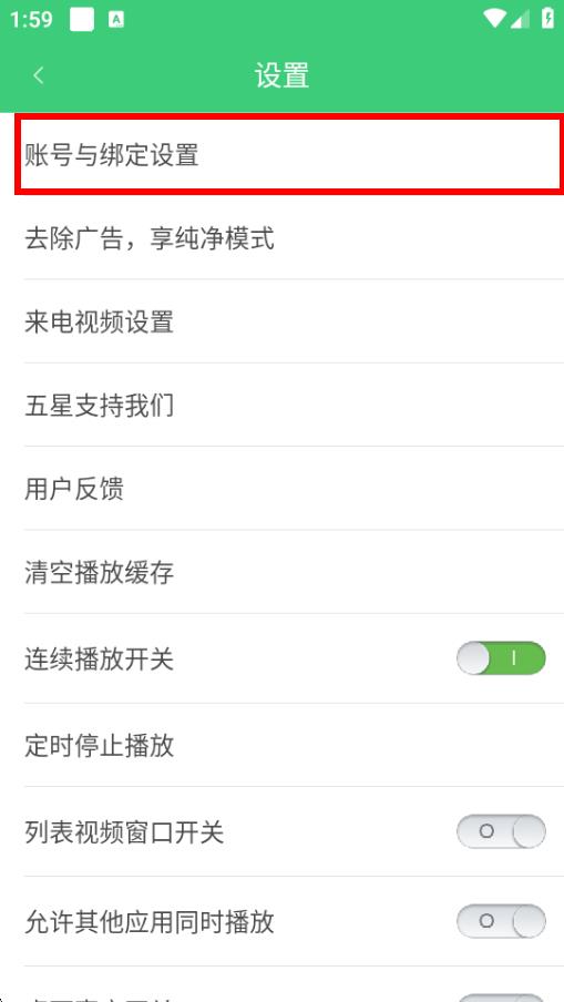 3、在設置界面里找到,點擊賬號與綁定設置選項。