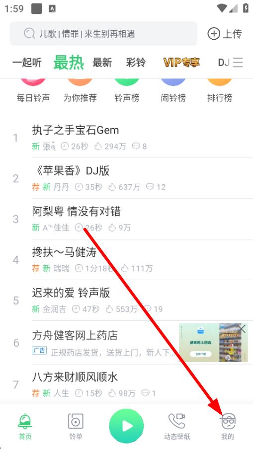 1、打開鈴聲多多App,點擊界面右下角我的進入個人中心頁面。