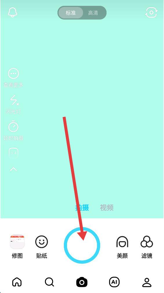 1、點(diǎn)擊底部拍攝圖標(biāo),進(jìn)入Snow相機(jī)的拍攝界面。