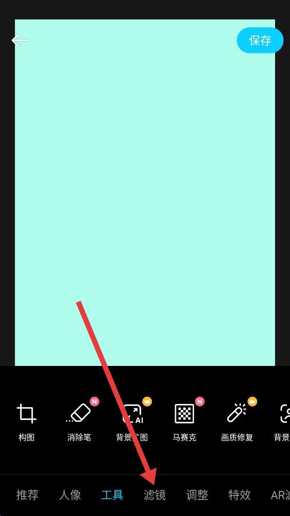 4、選擇喜歡的濾鏡后,點(diǎn)擊保存按鈕,即可為圖片添加濾鏡。