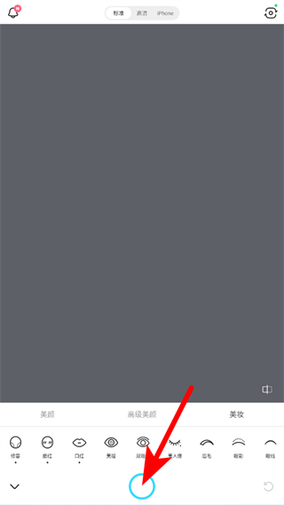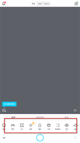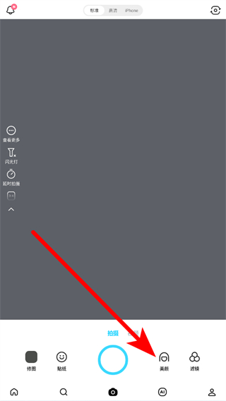 2、在拍攝界面中點(diǎn)擊美顏選項(xiàng),展開(kāi)美顏功能列表。